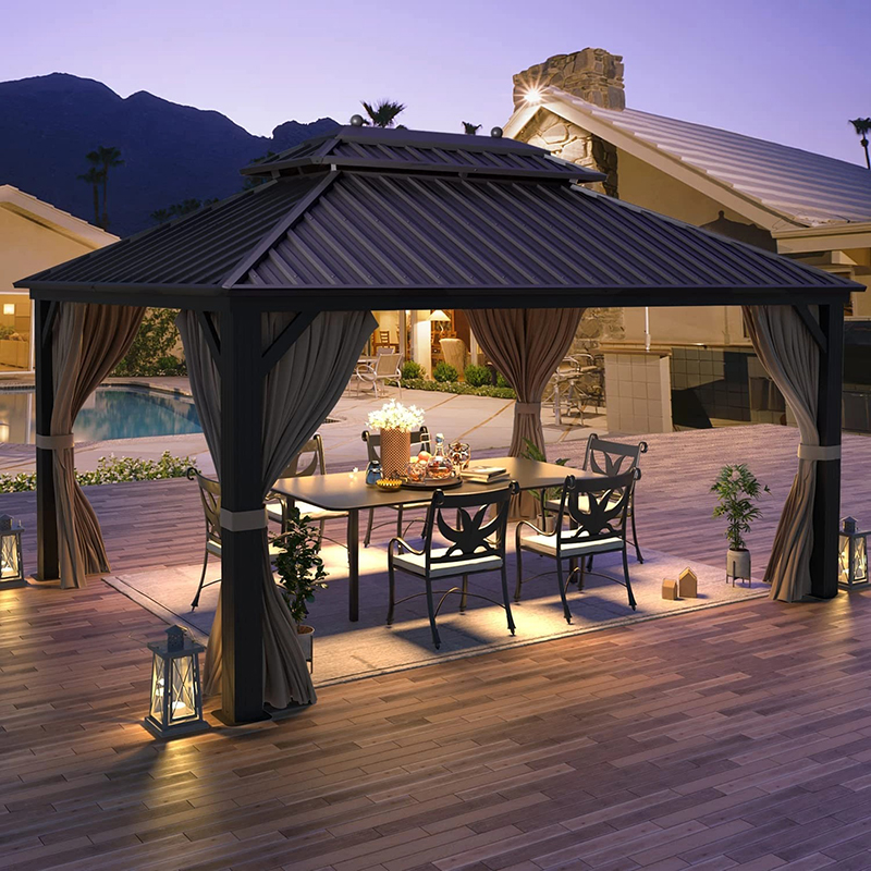 【DOUBLE-ROOF DESIGN】The outdoor gazebo adopts a ventilated double-roof to ensure air circulation while greatly enhancing stability in strong wind conditions. Hardtop gazebos for patios can tolerate high summer temperatures and withstand UV rays, providing you plenty of cool shade for enjoyment.